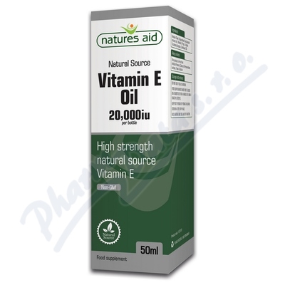 Tekutý Vitamin E - 50ml od britské společnosti Natures Aid pro denní péči o pokožku. Vitamín E přispívá k ochraně buňek před oxidačním stresem.