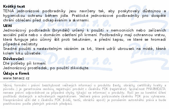 TENA jednorázové podbradníky jsou navrženy tak, aby poskytovaly důstojnou a hygienickou ochranu během jídla. Praktické jednorázové podbradníky pro dospělé chrání oblečení před odkapáváním a skvrnami.