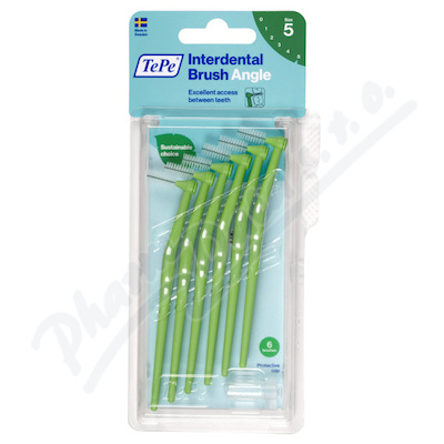 TePe Angle, mezizubní kartáček s prodlouženou rukojetí, 6 ks v blistru. Jednoduché zavádění do mezizubních prostor. Štíhlá čisticí hlava je zahnutá do pravého úhlu. Dlouhá, plochá rukojeť pro jistou manipulaci. Plastem izolovaný drátek je šetrný k zubům.