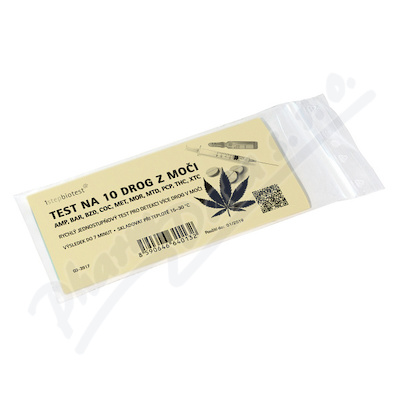 Rychlý jednostupňový kontrolní test pro zjištění AMP, BAR, BZD, COC, MET, MOR, MTD, PCP, THC, XTC v moči. Rozliší koncentraci 20-2000mcg