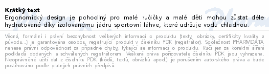 Ergonomický design je pohodlný pro malé ručičky a malé děti mohou zůstat déle hydratované díky izolovanému jádru sportovní láhve, které udržuje vodu chladnou.