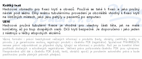 Hadicové obinadlo pro fixaci krytí a obvazů. Používá se také k fixaci a jako pružný návlek pod sádru. Díky svému tubulárnímu provedení je obzvláště vhodný k fixaci krytí na obtížných místech, jako jsou pahýly u pacientů po amputaci.