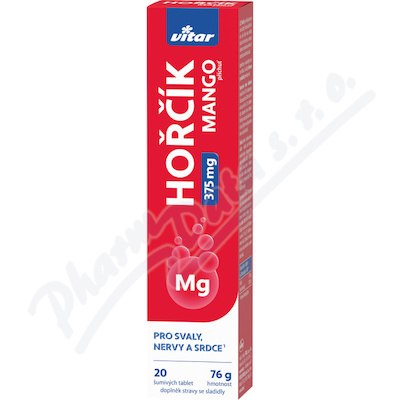 Šumivé tablety s obsahem 375 mg hořčíku určené k přípravě nápoje s lahodnou příchutí manga. Hořčík je velmi důležitý pro činnost svalů, nervové soustavy, ke snížení únavy a k udržení normálního stavu kostí a zubů.