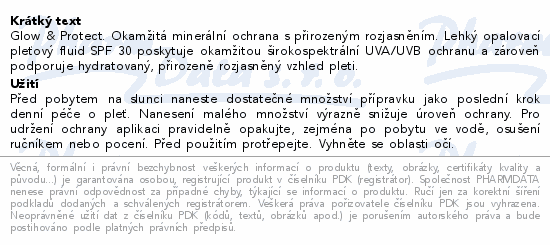 Glow & Protect. Okamžitá minerální ochrana s přirozeným rozjasněním. Lehký opalovací pleťový fluid SPF 30 poskytuje okamžitou širokospektrální UVA