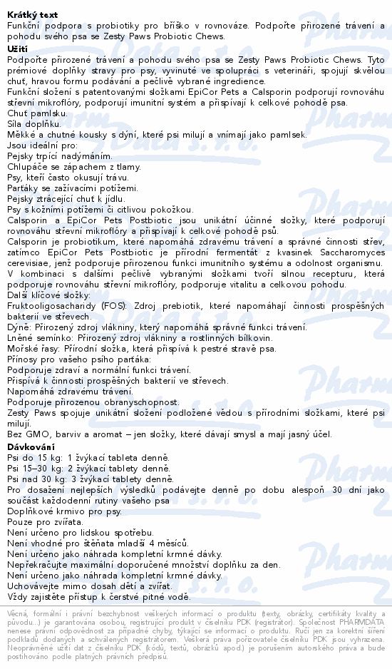 Funkční podpora s probiotiky pro bříško v rovnováze. Podpořte přirozené trávení a pohodu svého psa se Zesty Paws Probiotic Chews.