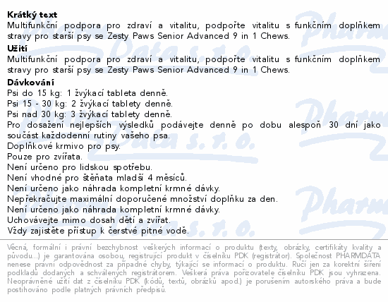 Multifunkční podpora pro zdraví a vitalitu, podpořte vitalitu s funkčním doplňkem stravy pro starší psy se Zesty Paws Senior Advanced 9 in 1 Chews.