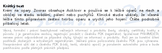 Farmakoterapeutická skupina: Antibiotika a chemoterapeutika pro použití v dermatologii - Virostatika - Aciklovir