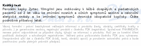 Farmakoterapeutická skupina: Antihistaminika pro systémovou aplikaci - Piperazinové deriváty - Cetirizin